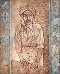 2011Portret van een Marokkaanse jongen. Linoleumsnede, afdruk in zwart op lokta